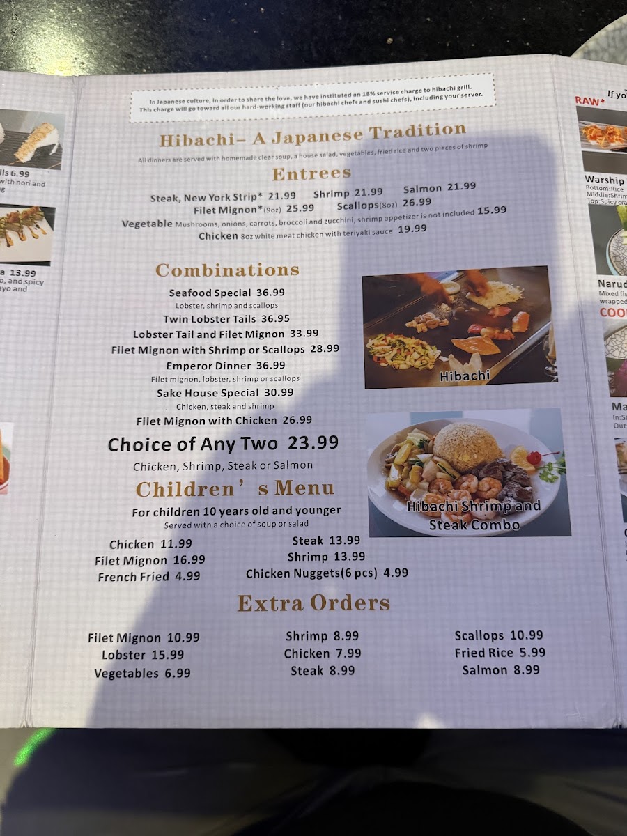Sake House Japanese Sushi & Hibachi Restaurant Menu